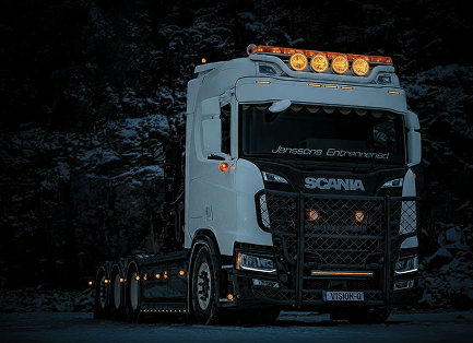 Ledbar on truck concurring the snow